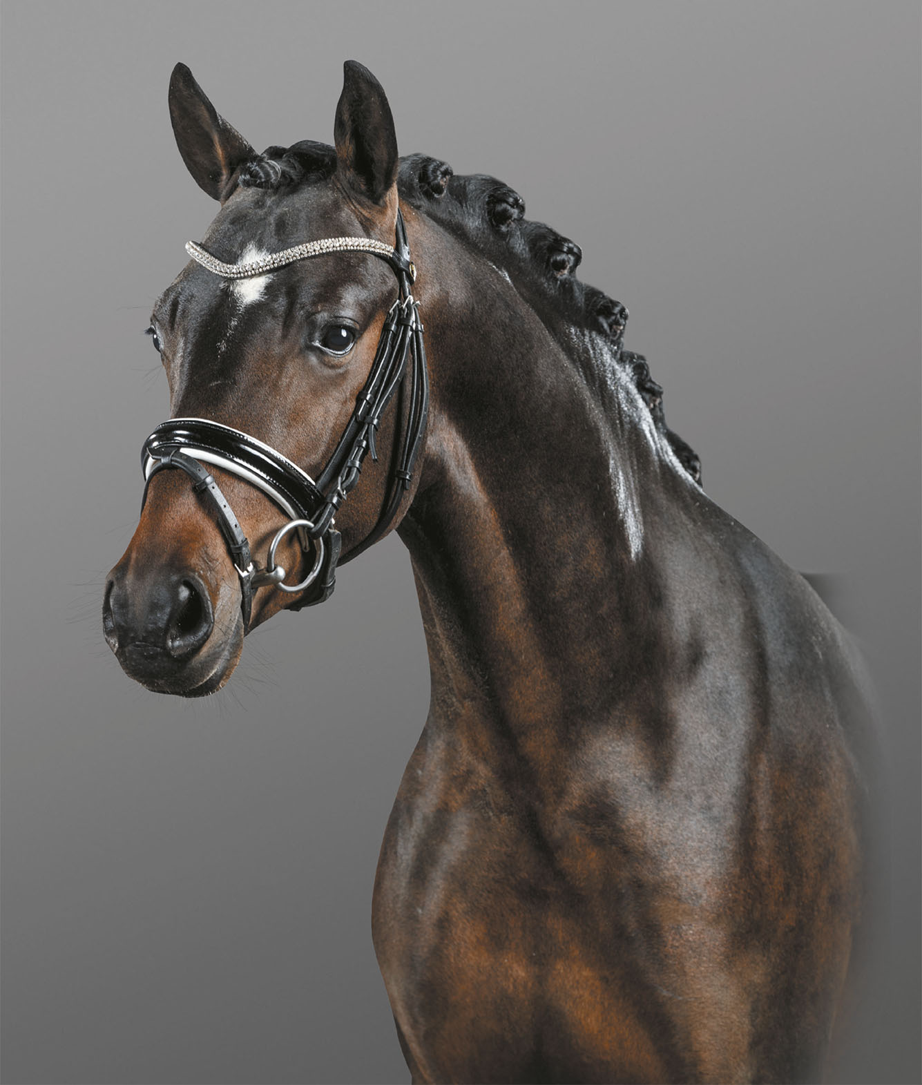 Debüt AT, Strahlemann aus dem Premierenjahrgang des Siegerhengstes DATING AT aus der Westfälischen Siegerstute St.Pr.St. Velina. Hochmodern, nobel und charmant, mit außergewöhnlichen Typwerten, so präsentiert sich der Youngster jederzeit. Seine Grundgangarten werden stets bergauf mit sehenswerter Motorik aus der Hinterhand in selbstbewusster Haltung vorgetragen. Abgerundet wird das Gesamtbild durch einen guten Schritt und sehr viel Übersicht und gute Manier beim Freispringen.
