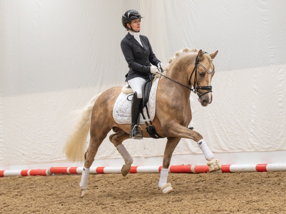 Dance to the Beat konnte die Körkommission anlässlich der Rheinischen Körung mit seinem außergewöhnlichen Charme und seiner Ausstrahlung überzeugen. Der wunderschöne Palomino zeigt sich stets in allen drei Grundgangarten in herausragender Form. Besonders im Trab begeistert er mit viel Schwung und Hebel, während er im Schritt durch einen sehr guten Übertritt und unerschütterliche Taktsicherheit besticht. Sein Galopp, stets bergauf und kraftvoll gesprungen, unterstreicht eindrucksvoll seine hohe Qualität.